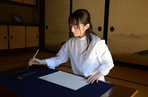 The calligrapher, Mariko Kinoshita, known by the pseudonym Shuusui Kinoshita, specializes in traditional calligraphy originating from China and Japan. She began studying this ancient art at the age of six. With her passion growing, Kinoshita enrolled in Daito University, a leader in calligraphy arts studies, to learn sophisticated techniques and train under established masters.
