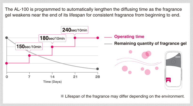 Air freshener diffuser programmed to release consistent fragrance from beginning to end.